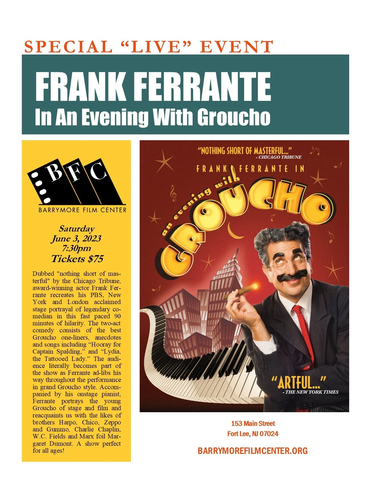 Tickets available for purchase for non-members online or at the box office.